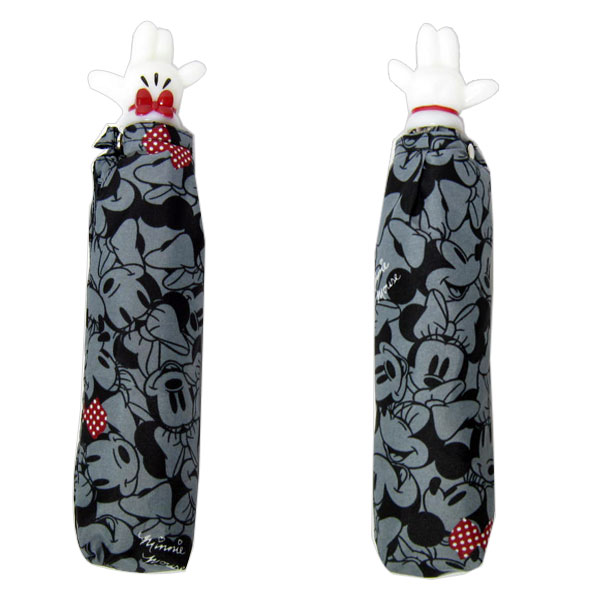 ミニーの手の形をした持ち手と総柄生地がとってもキュート!かばんに入れてスマートに持ち歩いてね☆